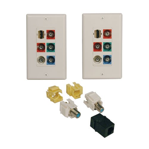 - Two (2) pre-loaded wall plates with: 3 RCA Component Video (RGB) couplers, 2 RCA Stereo Audio (Red/White) couplers, and 1 HDMI coupler