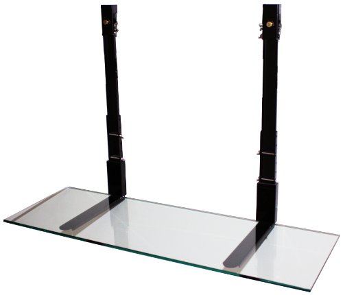 Simple Shelving Solutions Model CLG-00036 is a sleek and stylish way to add a 36 " clear glass floating shelf to many of the most popular HDTV stationary and tilt wall mounts, without any tools. It's patent pending design attaches directly to the stationary or tilt mount, not the wall. The black E coat aluminum extension arms with wall bumpers attach to the anti lift locking mechanism to safely secure the floating shelf to the wall mount. The 3/8" thick clear beveled glass is 12" deep and adjustable in height. Holding up to 30 lbs., Simple Shelf is perfect for the cable box, DVD or other devices. To hide the unsightly wires from your devices, a cable management system is included. The Simple Shelf currently works with 32" to 60" stationary and tilt mounts from AVF Vector, Bello, Chief, Haropa, Ionic, K2, Level Mount, Luxor, Monster, Omni, Peerless, Premier, ProMount, Rhino, Sanus and Welton. Simple Shelf is not for use with Articulating, Full Motion or motorized Wall Mounts.